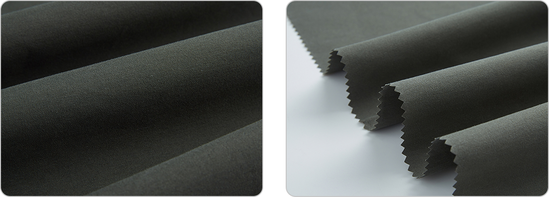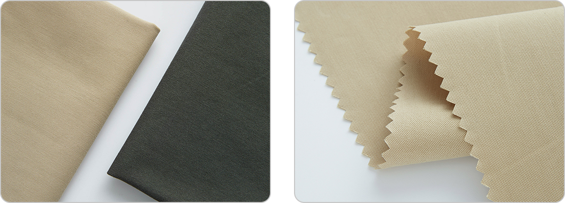 É tecido 72% algodão 28% nylon oxford 155gsm 56" de largura, para que possa ser transformado em casaco feminino com microareia e acabamento rígido.
